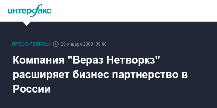 Компания "Вераз Нетворкз" расширяет бизнес партнерство в России