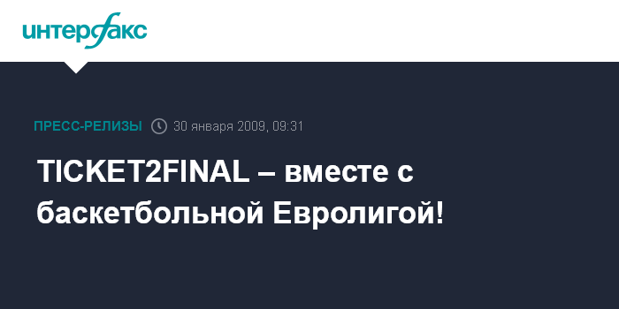 BUSINESS WIRE - TICKET2FINAL – вместе с баскетбольной Евролигой!