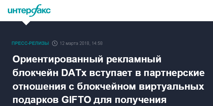 Ориентированный рекламный блокчейн DATx вступает в партнерские отношения с блокчейном виртуальных подарков GIFTO для получения больших преимуществ от совместной деятельности