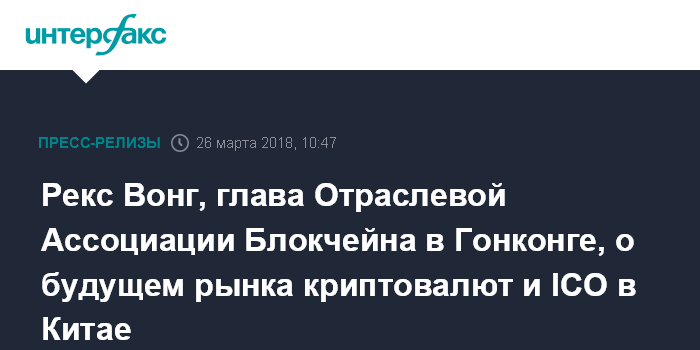 Рекс Вонг, глава Отраслевой Ассоциации Блокчейна в Гонконге, о будущем рынка криптовалют и ICO в Китае
