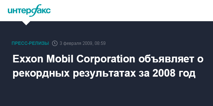 BUSINESS WIRE - Exxon Mobil Corporation объявляет о рекордных результатах за 2008 год