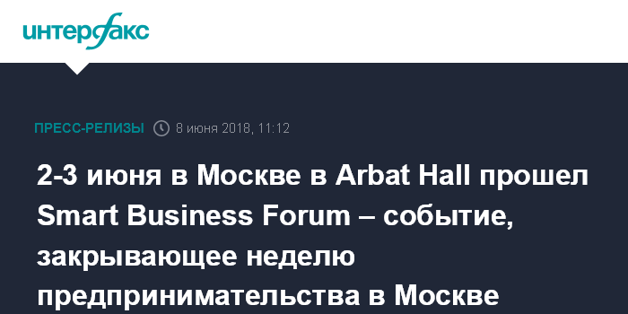 2-3 июня в Москве в Arbat Hall прошел Smart Business Forum – событие, закрывающее неделю предпринимательства в Москве