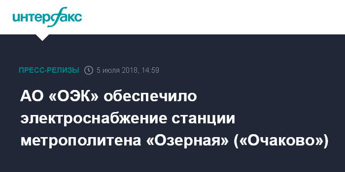 АО «Объединенная энергетическая компания» завершило работы по электроснабжению строящейся станций Солнцевской линии Московского метрополитена «Озерная» («Очаково»).