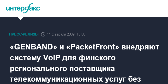 «GENBAND» и «PacketFront» внедряют систему VoIP для финского регионального поставщика телекоммуникационных услуг без дополнительных затрат
