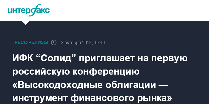 ИФК “Солид” приглашает на первую российскую конференцию «Высокодоходные облигации — инструмент финансового рынка»