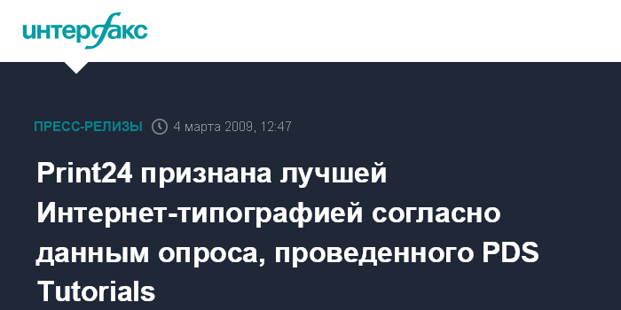 BUSINESS WIRE - print24 признана лучшей Интернет-типографией согласно данным опроса, проведенного PDS Tutorials