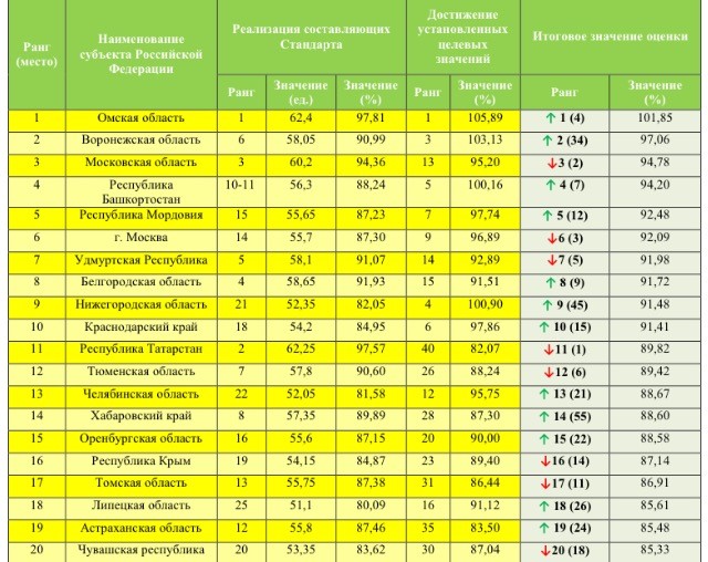 В тройке лидеров Омская область опередила Воронежскую и Московскую область. Лидер предыдущих двух лет – Республика Татарстан – опустился на 11 позицию.