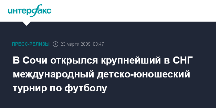 20 марта 2009 г. - Сегодня в г. Сочи открылся крупнейший в СНГ международный детско-юношеский турнир по футболу. В турнире, который носит имя известного советского футболиста Валентина Бубукина, примут участие более 100 команд из России, Азербайджана, Армении, Белоруссии, Украины и Абхазии.