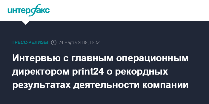 BUSINESS WIRE - Секрет print24: Интервью с главным операционным директором print24 о рекордных результатах деятельности компании