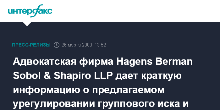 Исправлено…фирмой Hagens Berman Sobol & Shapiro LLP