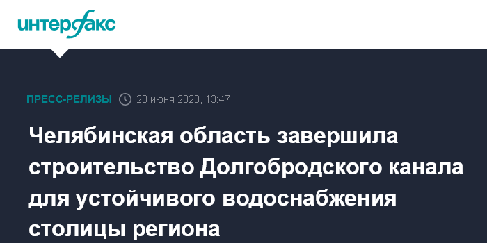 "Долгобродский канал - ключевой для безопасности водоснабжения Челябинской агломерации. Завершилась стройка, начатая еще с советских времен. Мы точно гарантируем, что при любых обстоятельствах в Челябинской агломерации не будет проблем с чистой питьевой водой", - сказал Текслер.