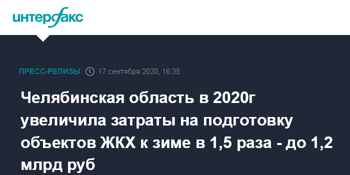 Челябинская область в 2020г увеличила затраты на подготовку объектов ЖКХ к зиме в 1,5 раза - до 1,2 млрд руб