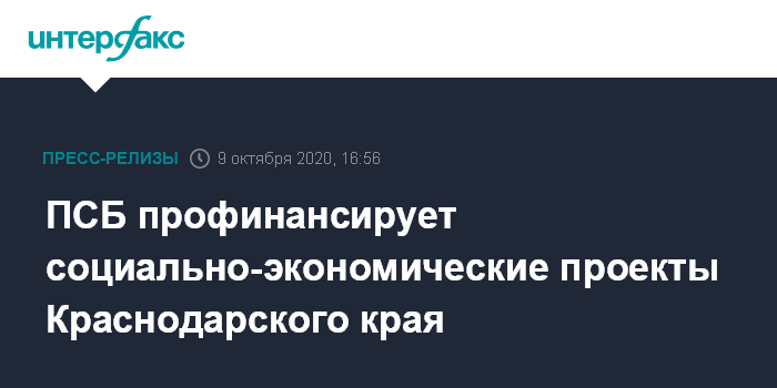 ПСБ профинансирует социально-экономические проекты Краснодарского края