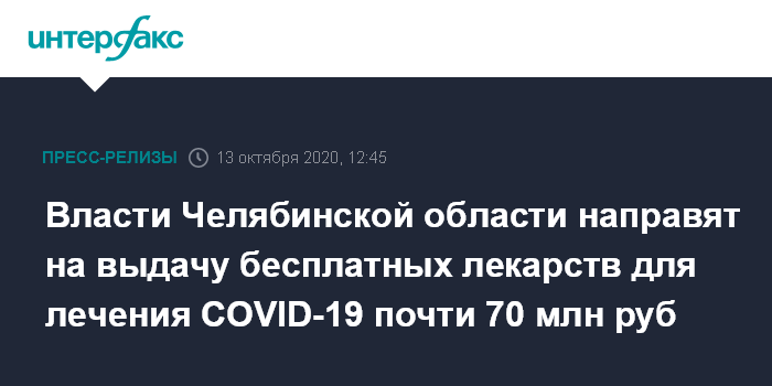 Власти Челябинской области направят на выдачу бесплатных лекарств для лечения COVID-19 почти 70 млн руб