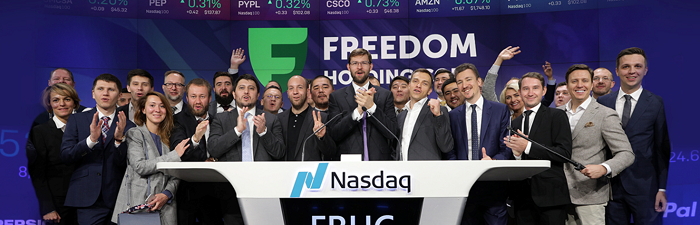 Freedom Holding Corp. стал первым брокером из СНГ, получившим листинг на ведущей американской бирже Nasdaq. В момент запуска цена за бумагу холдинга составляла $14,42. На 15 октября 2020 года стоимость акции FRHC увеличилась почти вдвое, поднявшись выше отметки $27,24. Капитализация всего холдинга в октябре превысила $1,5 млрд.