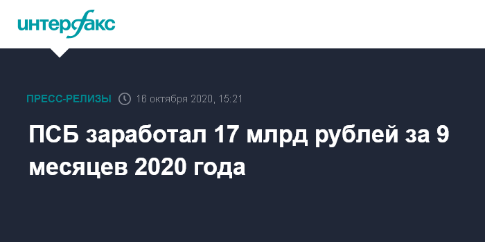ПСБ заработал 17 млрд рублей за 9 месяцев 2020 года