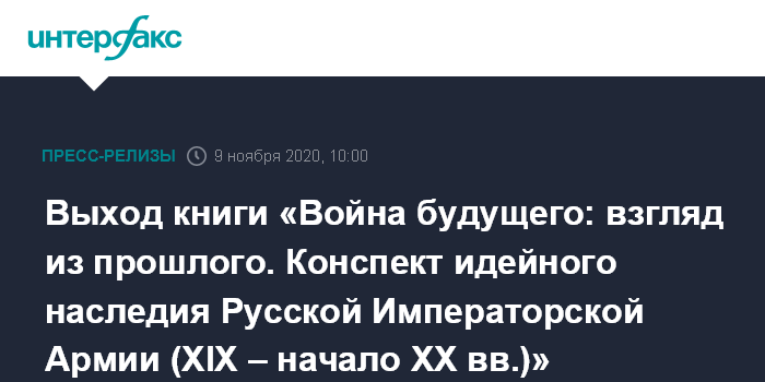 Выход книги «Война будущего: взгляд из прошлого. Конспект идейного наследия Русской Императорской Армии (XIX – начало ХХ вв.)»