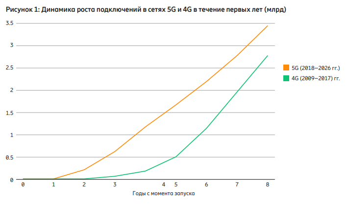 К концу 2020 года покрытием 5G будет охвачен 1 млрд человек — 15% мирового населения. Операторы будут активно строить 5G-сети, и в 2026 году в зоне их действия будут жить 60% мирового населения, а количество подключений достигнет 3,5 млрд.