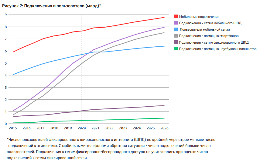 Компания Ericsson (NASDAQ: ERIC) представила очередной выпуск своего ежегодного исследования Ericsson Mobility Report за ноябрь 2020 года. По данным исследования, на сети связи пятого поколения (5G) придется 4 из 10 мобильных подключений в 2026 году. Очевидно, что 5G станет самой быстро развивающейся технологией, которая по темпам распространения быстро обгонит стандарты предыдущих поколений.