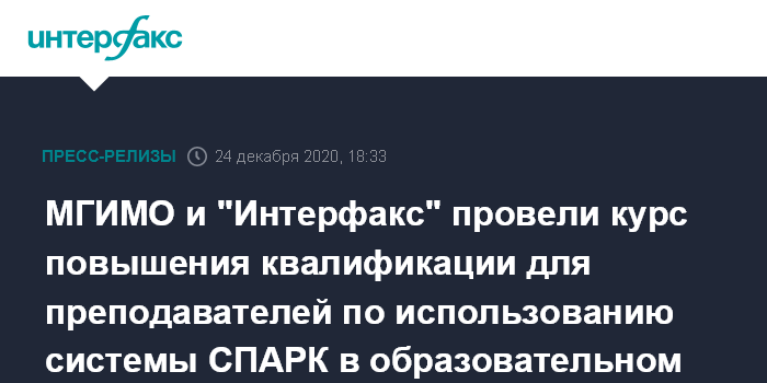 МГИМО и "Интерфакс" провели курс повышения квалификации для преподавателей по использованию системы СПАРК в образовательном процессе
