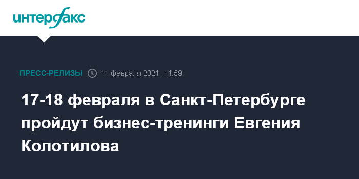 17-18 февраля в Санкт-Петербурге пройдут бизнес-тренинги Евгения Колотилова
