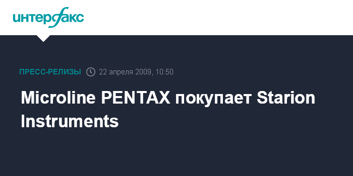BUSINESS WIRE - Эта покупка обеспечивает ей глобальный доступ к технологии Tissue Welding компании Starion и расширяет охват бизнеса Microline PENTAX, распространяя его на новые хирургические рынки
