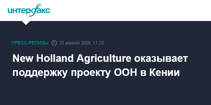 Лугано, Швейцария – 22 апреля 2009 г.: компания New Holland Agriculture, всемирный производитель и дистрибьютор сельскохозяйственного оборудования, член Группы Fiat (FIA.MI), поставила 98 тракторов в рамках проекта, осуществляемого совместно правительством Италии и Программой развития Организации Объединенных Наций (UNDP).
