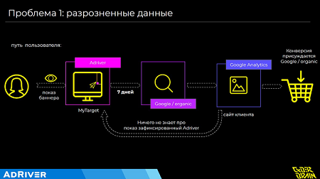 Однако разнообразие технологических решений создает проблему фрагментарности. Собранные данные о рекламных кампаниях клиентов распределены по разным системам аналитики и никак не интегрированы. В одних системах хранится медиастатистика и данные о качестве каналов, в других – аналитика сайта, в третьих данные о звонках, в четвертых – данные из CRM и статистика по продажам. Отчеты не учитывают взаимное влияние разных рекламных каналов на результат и не дают информации о том, как изменения бюджета в отдельных каналах повлияют на конечный результат всей кампании.