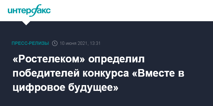«Ростелеком» подвел итоги X конкурса региональных журналистов и блогеров «Вместе в цифровое будущее», который прошел при поддержке Министерства цифрового развития, связи и массовых коммуникаций Российской Федерации, АО «Шнейдер Электрик» (юридическое лицо компании Schneider Electric в России) и группы «Интерфакс».