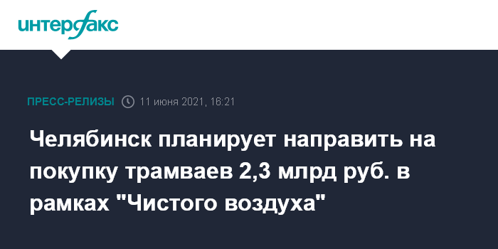 Челябинск планирует направить на покупку трамваев 2,3 млрд руб. в рамках "Чистого воздуха"