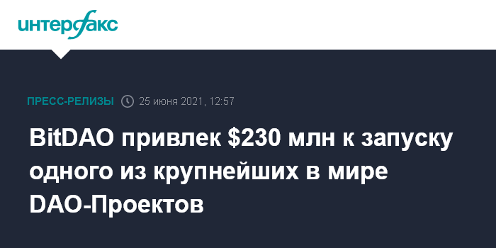 PANAMA CITY, PANAMA - Media OutReach - 16 июня 2021 года - BitDAO, один из новейших и крупнейших в мире децентрализованных автономных проектов, завершил private sale на сумму $230 млн долларов для своих первичных партнеров во главе с Питером Тилем, Founders Fund, Pantera Capital и Dragonfly Capital. Среди более 20 организаций и проектов DeFi в число участников проекта вошли Алан Говард, Jump Capital, Spartan Group, Fenbushi и Кейн Уорик из Synthetix.