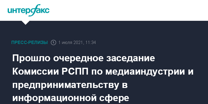 30 июня 2021 года состоялось очередное заседание Комиссии РСПП по медиаиндустрии и предпринимательству в информационной сфере, которое прошло в формате онлайн заседания.