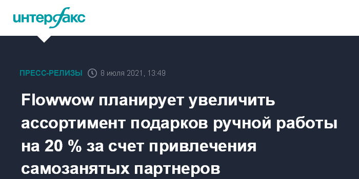 Flowwow планирует увеличить ассортимент подарков ручной работы на 20 % за счет привлечения самозанятых партнеров