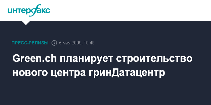 Компания green.ch планирует завершить строительство нового гринДатацентер летом 2010г.