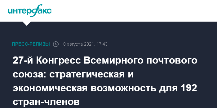 27-й Конгресс Всемирного почтового союза: стратегическая и экономическая возможность для 192 стран-членов