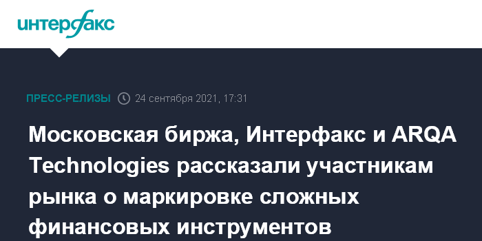 Московская биржа, Интерфакс и ARQA Technologies рассказали участникам рынка о маркировке сложных финансовых инструментов