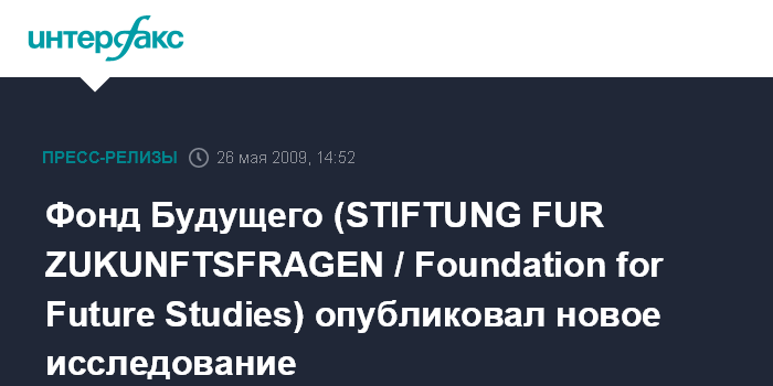 Фонд Будущего (STIFTUNG FUR ZUKUNFTSFRAGEN / Foundation for Future Studies) опубликовал новое исследование
