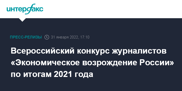 Всероссийский конкурс журналистов «Экономическое возрождение России» по итогам 2021 года