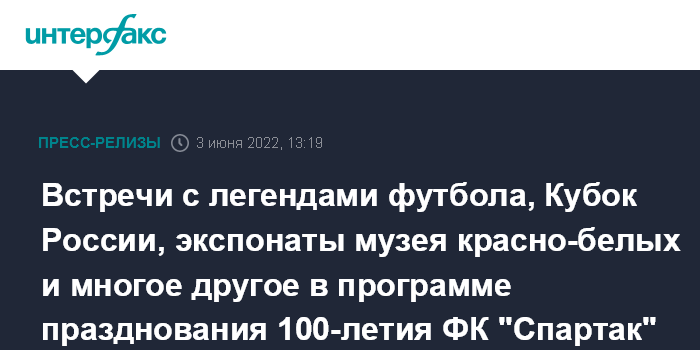 Встречи с легендами футбола, Кубок России, экспонаты музея красно-белых и многое другое в программе празднования 100-летия ФК "Спартак" на Winliner