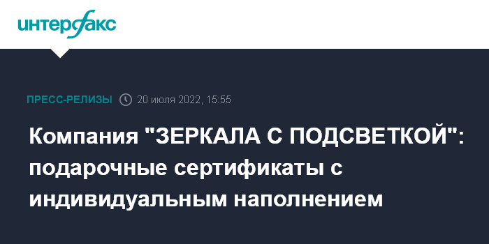 Компания "ЗЕРКАЛА С ПОДСВЕТКОЙ": подарочные сертификаты с индивидуальным наполнением