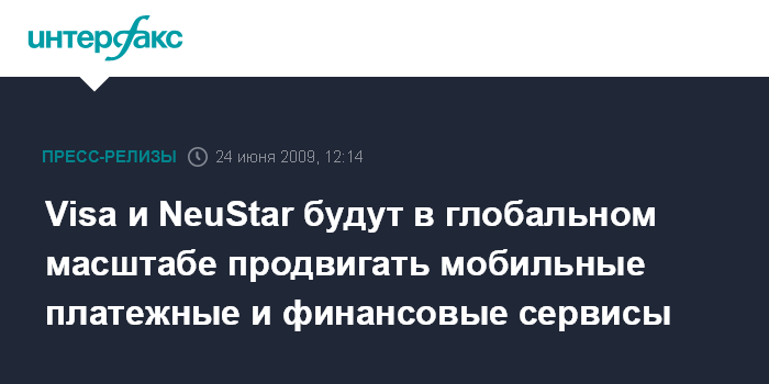 Крупнейшая в мире сеть розничных электронных платежей1 Visa Inc. (NYSE: V) и компа-ния NeuStar (NYSE: NSR) - пользующийся доверием провайдер услуг взаимного соедине-ния для многих ведущих мировых операторов беспроводных сетей - объявили сегодня о заключении стратегического альянса, призванного ускорить внедрение мобильных финан-совых услуг.
