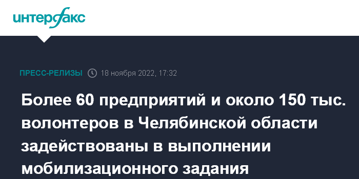 Более 60 предприятий и около 150 тыс. волонтеров в Челябинской области задействованы в выполнении мобилизационного задания