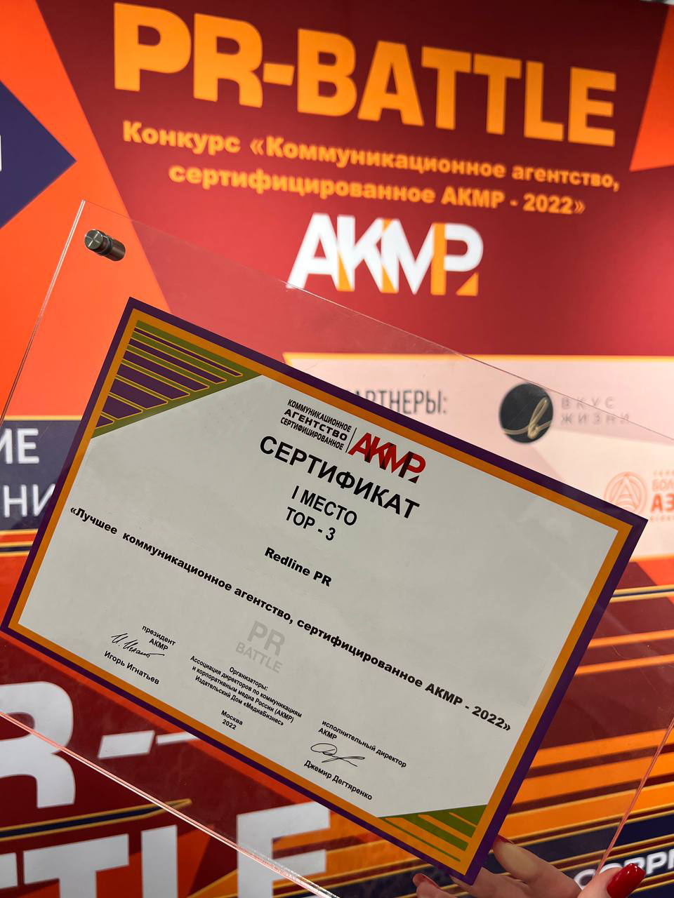 15 ноября 2022 года коммуникационные агентства и студенческие команды ведущих ВУЗов страны представили тендерные решения от компаний-заказчиков на ежегодном конкурсе "PR Battle", организованном Ассоциацией директоров по коммуникациям и корпоративным медиа России (АКМР). Лучшим коммуникационным агентством уже второй год подряд было признано Redline PR.