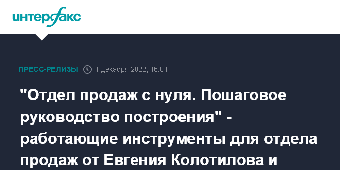 "Отдел продаж с нуля. Пошаговое руководство построения" - работающие инструменты для отдела продаж от Евгения Колотилова и Александра Ерохина