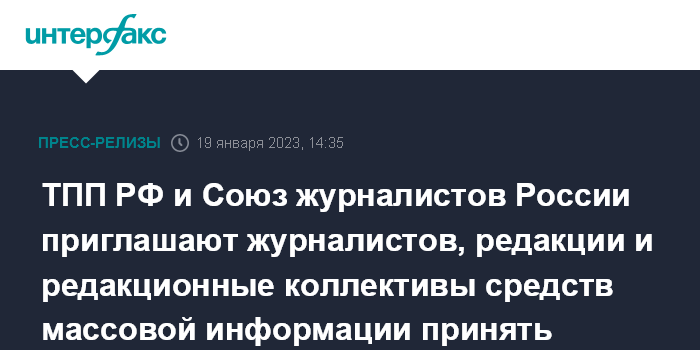 ТПП РФ и Союз журналистов России приглашают журналистов, редакции и редакционные коллективы средств массовой информации принять участие во Всероссийском конкурсе журналистов "Экономическое возрождение России" по итогам 2022 года.
