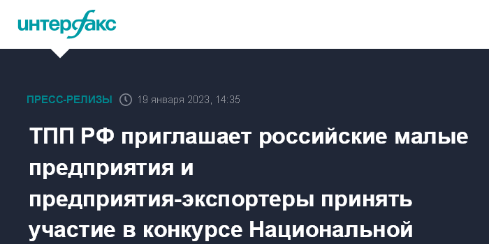 Торгово-промышленная палата Российской Федерации приглашает российские малые предприятия и предприятия-экспортеры принять участие в конкурсе Национальной премии в области предпринимательской деятельности "Золотой Меркурий" по итогам 2022 года.