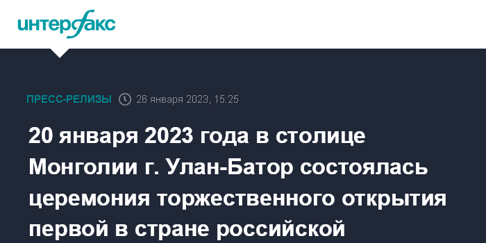 20 января 2023 года в столице Монголии г. Улан-Батор состоялась церемония торжественного открытия первой в стране российской криогенной автомобильной газозаправочной станции (КриоАЗС).