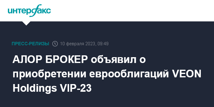 АЛОР БРОКЕР объявил о приобретении еврооблигаций VEON Holdings VIP-23