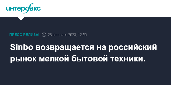 Sinbo возвращается на российский рынок мелкой бытовой техники.