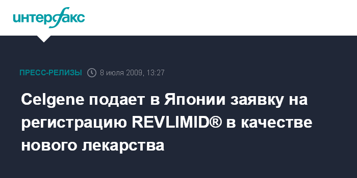 Celgene подает в Японии заявку на регистрацию REVLIMID® в качестве нового лекарства